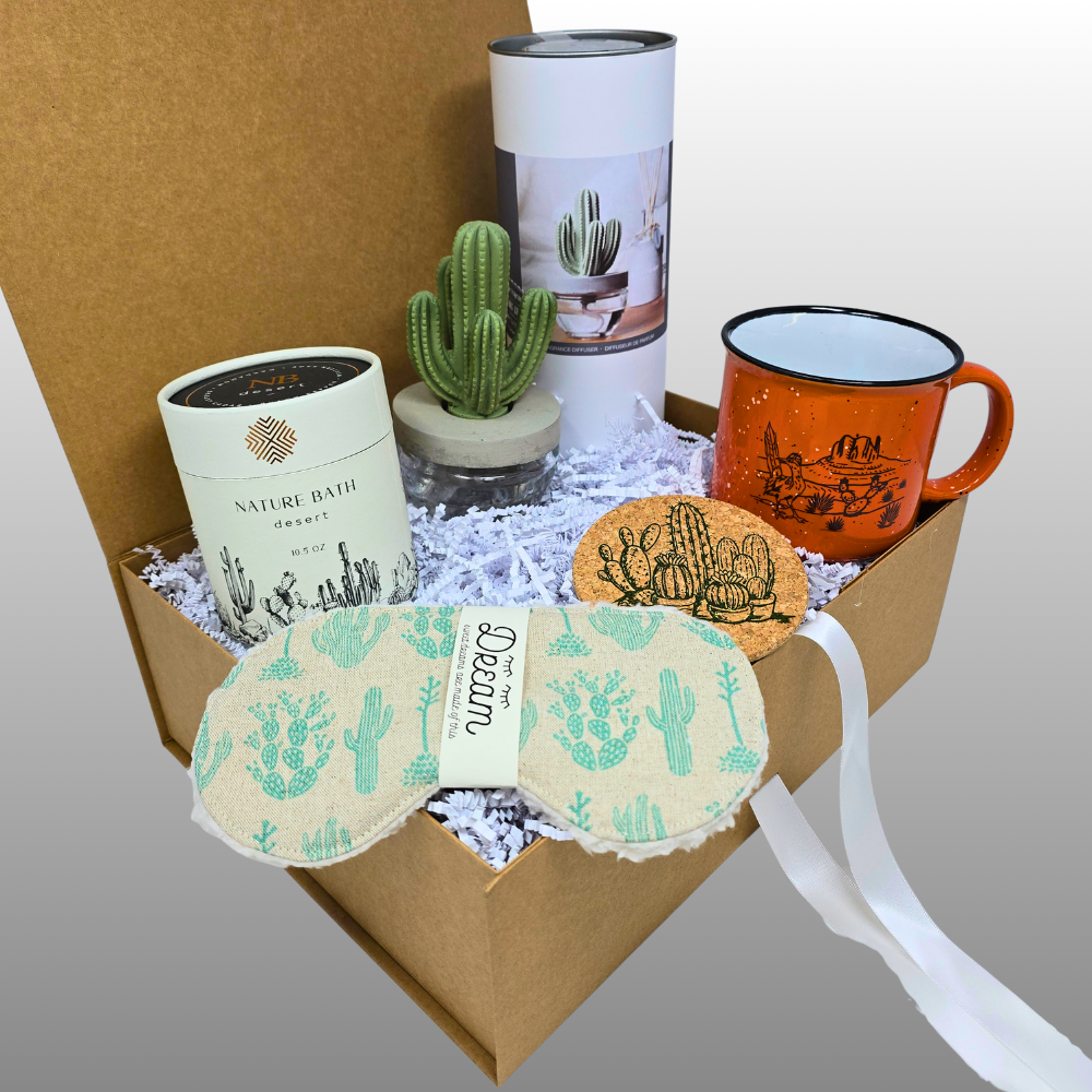 Discover the essence of the Mojave Desert in a gift set featuring themed items inspired by its rugged landscape and natural beauty.